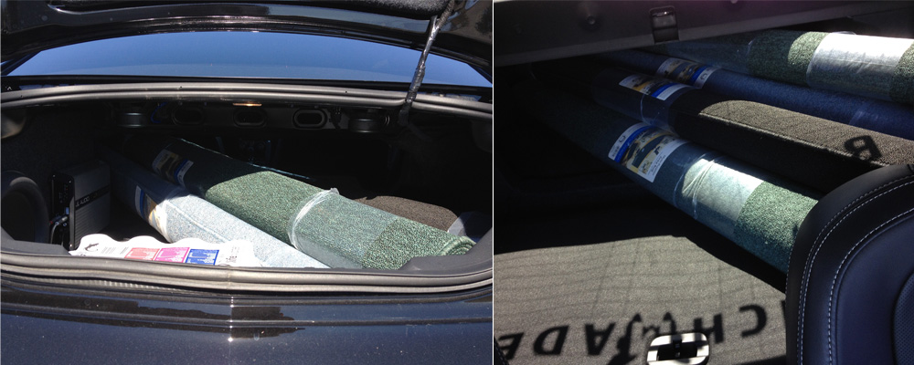 I know, I know- I said I wasn’t going to post here for awhile. But the other night I had to go pick up some area rugs. They are five feet long when rolled and there were quite a few of them. This is where the subwoofer design I picked really paid off.